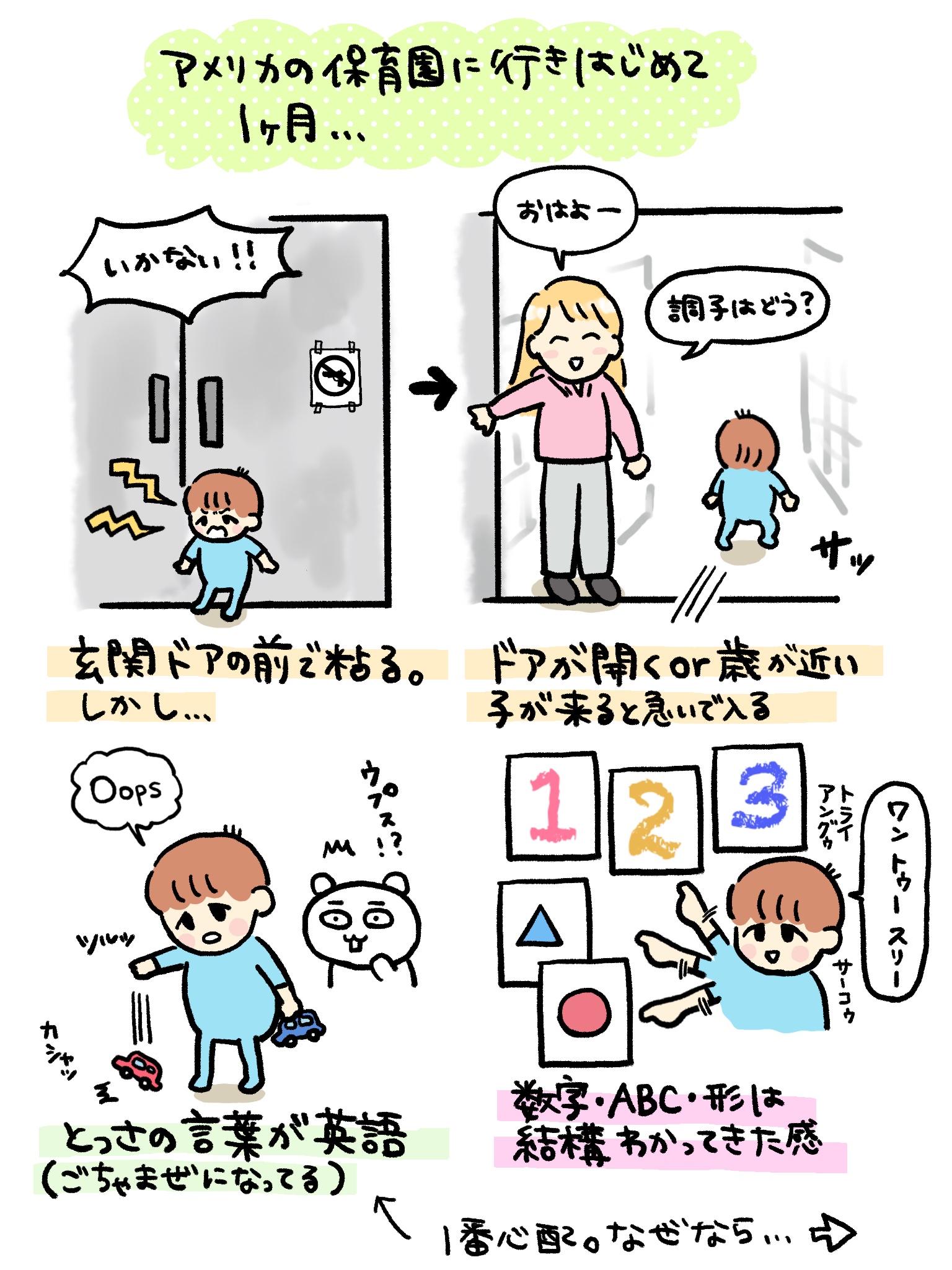 アメリカの保育園に通い始めて1か月が過ぎたので変化をまとめてみました。