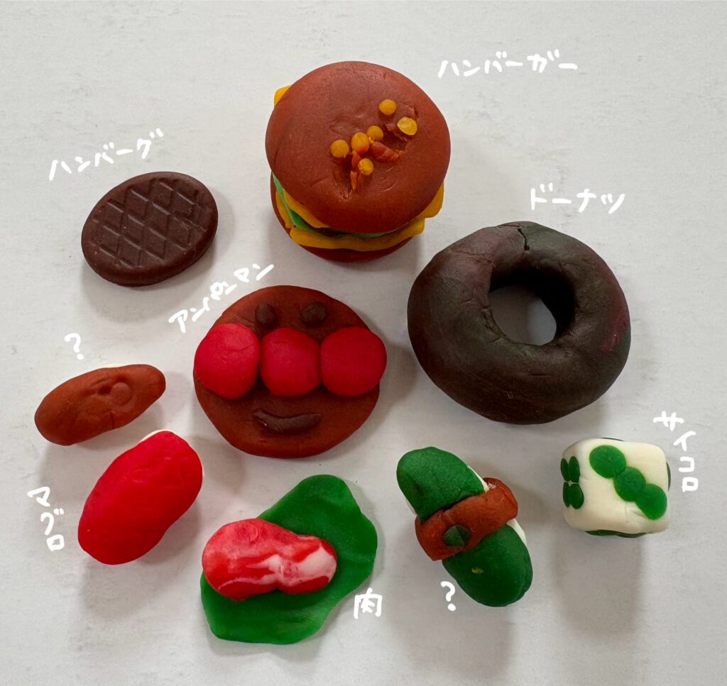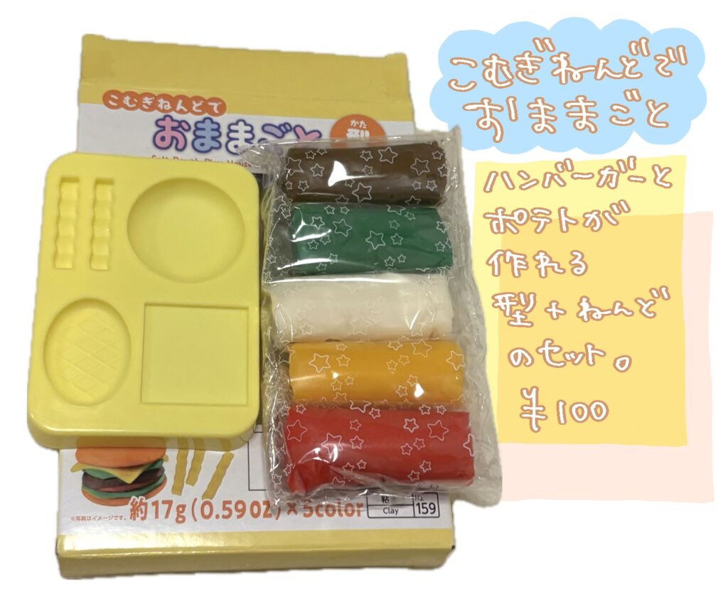 「こむぎねんどでおままごと ハンバーガーセット」を親子3人で遊びました。