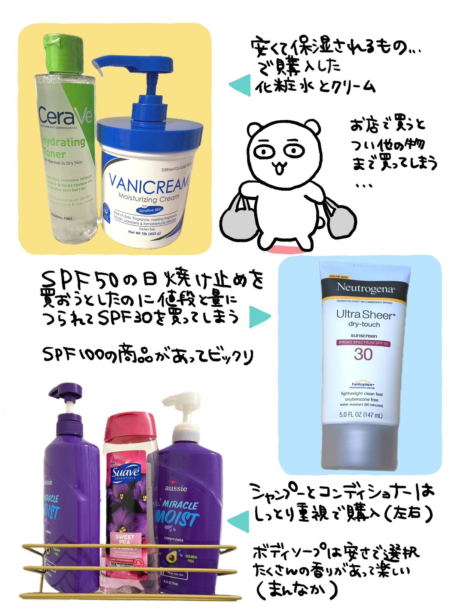 aussieのMIRACLE MOISTをセット買いしました。17ドル(約2500円)ぐらい。