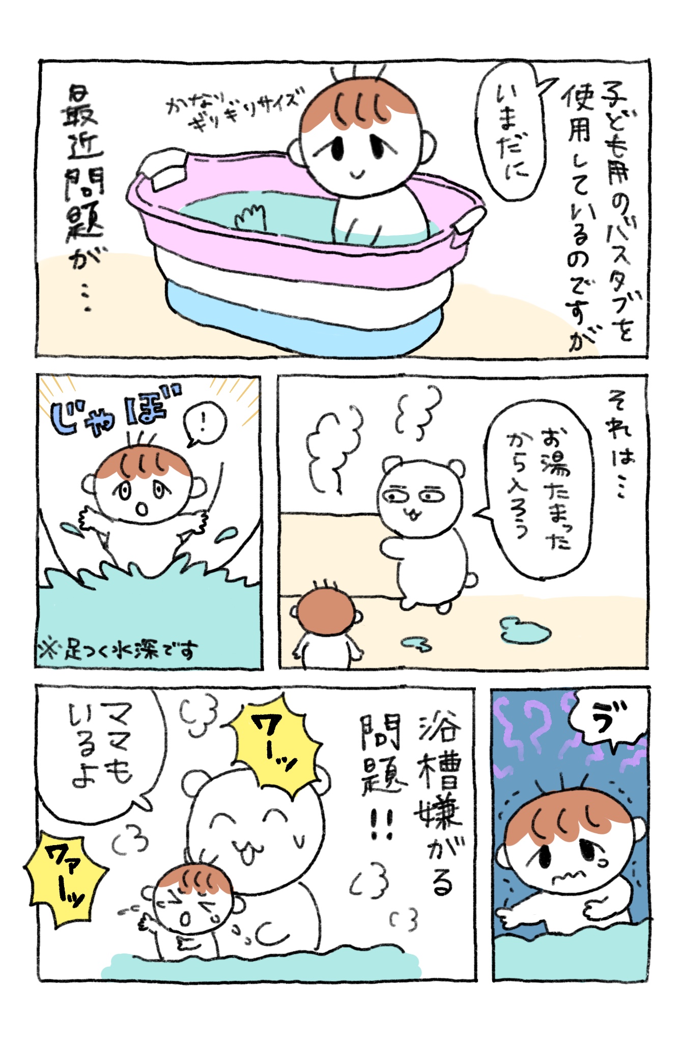 ベビーバスのこじんまり感に慣れてしまったのか、普通の浴槽でのお風呂を嫌がるようになっちゃいました。お湯を少なくしてもダメです。