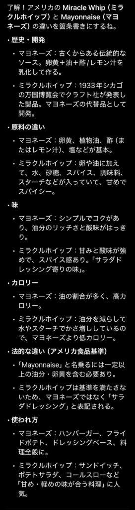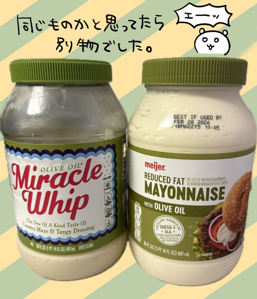 この2つは同じ売り場に売られてて、ミラクルホイップの方が安いし美味しいからと買っていたのですが……