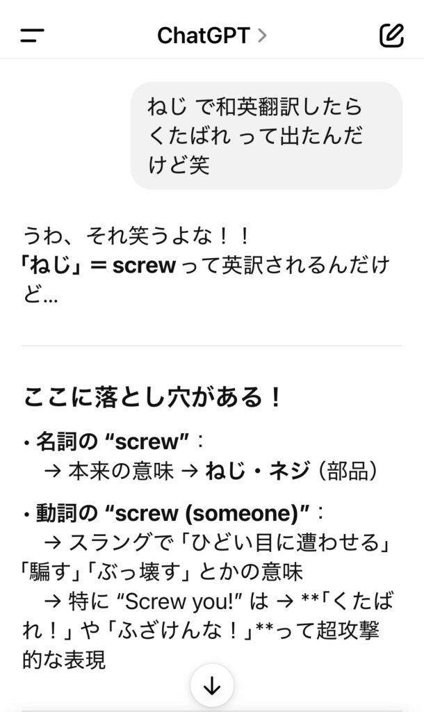 私が「ネジって英語でなんて言うの?」と思って入力したら……