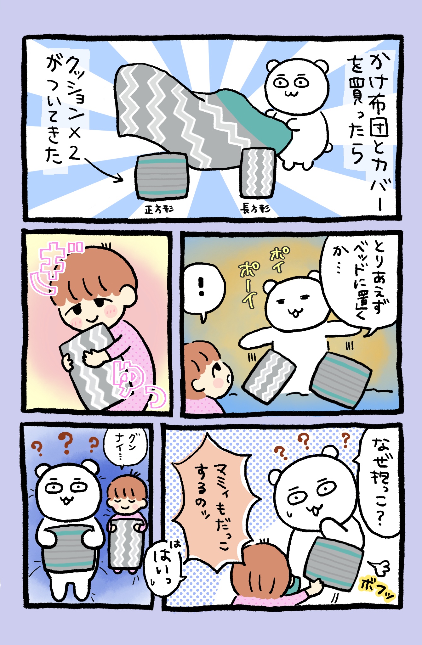 掛け布団とカバーのセット商品を買ったらクッションが2個ついてきました。
