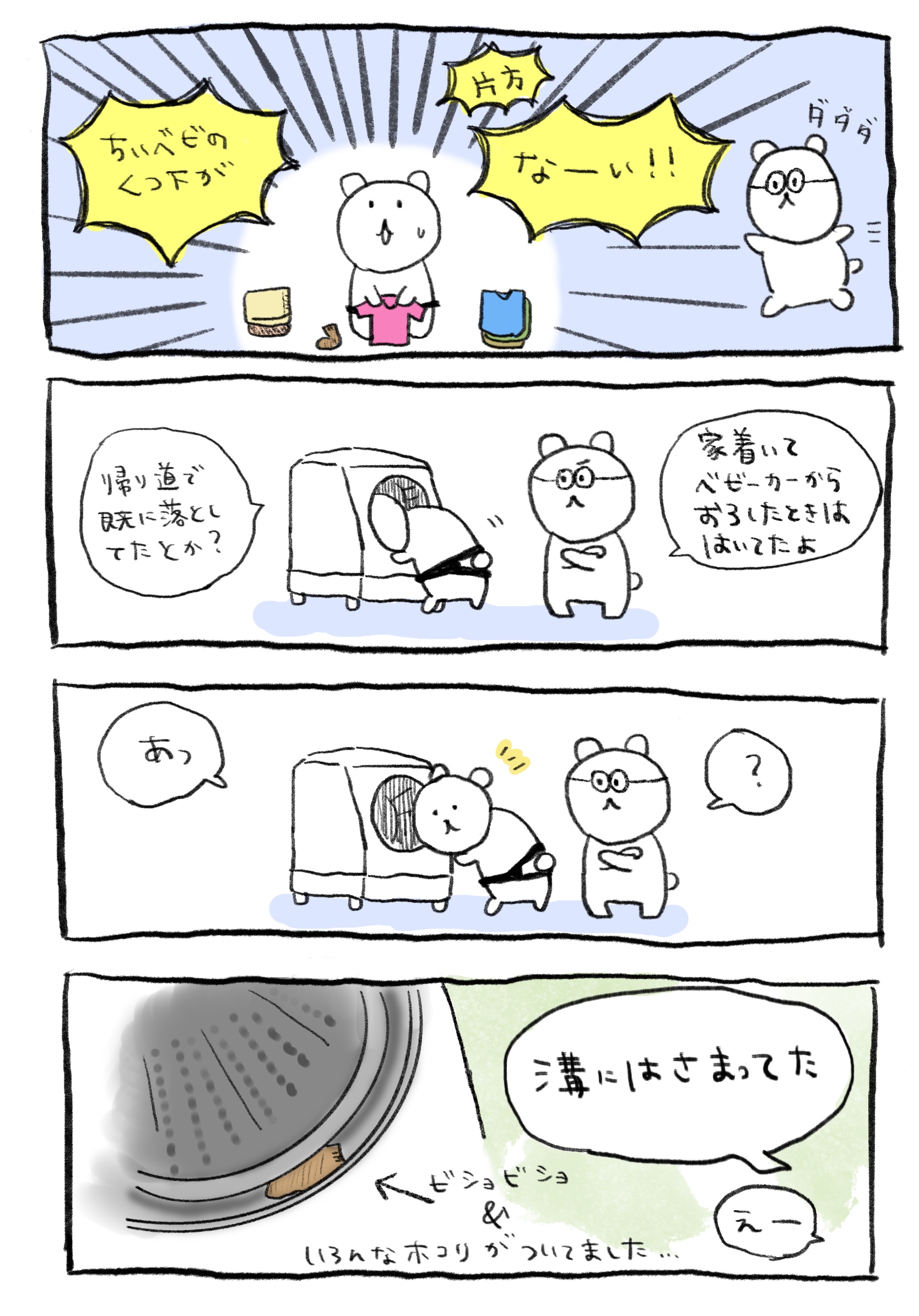 洗濯後の靴下紛失事件(4コマ漫画あり)