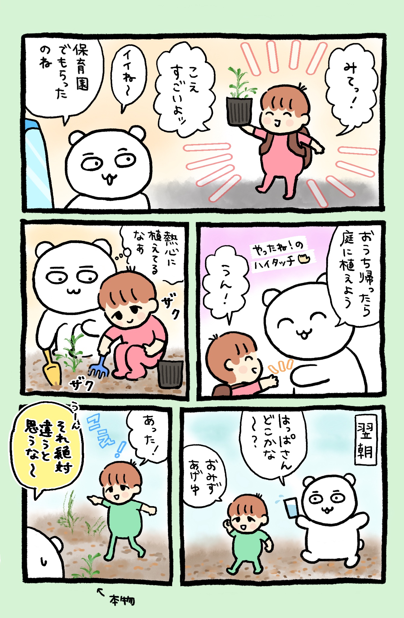 アースデーということでちーちゃんが小さな植物を保育園から持って帰ってきた時のことです。